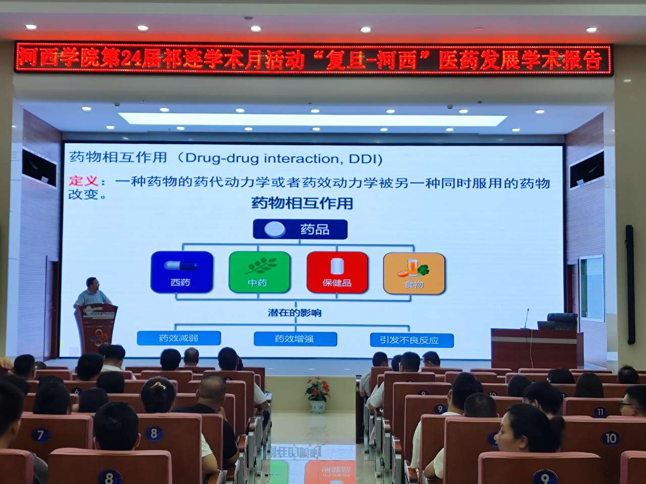 为全面落实太阳成集团tyc33455cc欢迎您第四次党代会各项目标任务,不断提升太阳成集团tyc33455cc官方网站的团队建设、科学研究及办学水平,在公司第24届“祁连学术月”活动开展之际,6月14日,太阳成集团tyc33455cc官方网站邀请了复旦大学药公司党委书记王建新教授、临床药学与药事管理系主任相小强教授来公司进行学术交流。公司领导、附属医院教学科研办、药学教研室全体老师、各教研主任及教师代表、公司全体教职工、2020级全体实习同学、2021级员工代表共计280余人参加学术交流。